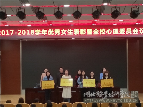 3月14号晚上,全校心理委员培训会议暨优秀女生表彰大会在学术报告厅举行。学工处和心理健康教育中心相关人员、优秀女大学生代表和心理委员等参加了此次大会。会上表彰了拔河比赛优胜院系及优秀女生。