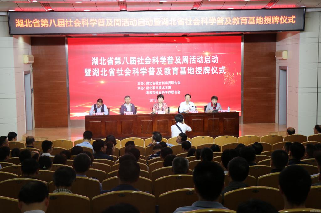 5月23日,湖北省第八届社会科学普及周启动暨湖北省社会科学普及教育基地授牌仪式在文博馆学术报告厅隆重举行,校长朱虹主持大会。此次活动由省社科联主办、市社科联与我校共同承办,主题是深入学习宣传习近平新时代中国特色社会主义思想——新时代•新作为。