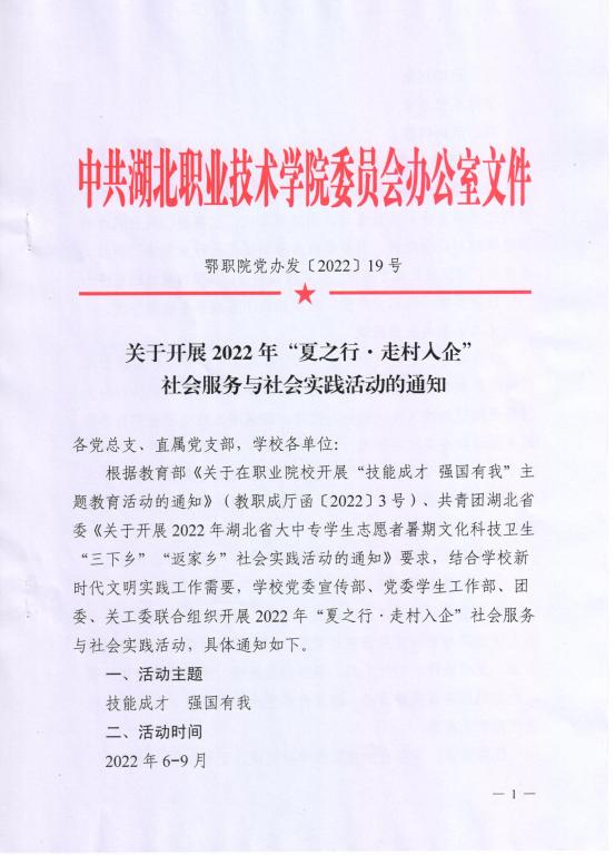 关于开展2022年“夏之行·走村入企” 社会服务与社会实践活动的通知