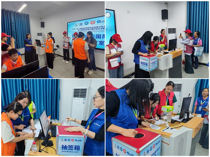 在10月11日上午,组委会召开了裁判工作会议,为50余名裁判颁发聘书、进行执裁业务培训。11日下午开幕式后,召开了领队工作会议,就比赛的整体安排、注意事项作了要求;各参赛选手在熟悉赛场后,分别按照医卫组、非医卫组和国际组进行检录、抽签、二次加密,并开展职业能力测试。10月12日至13日,将进行实操技能模块的比赛和技能宣讲、急救知识传播比赛。