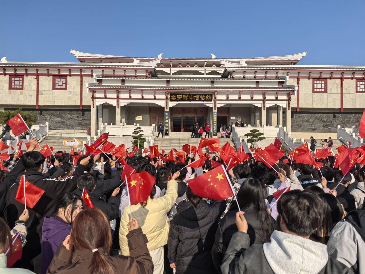 (本网讯 卢雅雪 冷玖玲)为深入学习贯彻习近平总书记考察湖北重要讲话精神,校团委组织两千余学子分批次赴云梦县博物馆开展“牢记殷殷嘱托,青春感恩奋进”主题团日示范活动。11月30日上午,团孝感市委副书记陈志明,学校党委委员、副校长梅重,团云梦县委负责人,我校党委宣传部、党委统战部、团委负责人,第九期青马工程培训班学员和团员青年们,率先前往云梦县博物馆。迎着和煦的朝阳,在馆前齐唱国歌、重温入团誓词,并齐呼响亮的青春誓言:“请党放心,强校有我!请党放心,强市有我!请党放心,强国有我!”这不仅是对党的深情歌颂,更是我校学子心中坚定信念的生动体现。