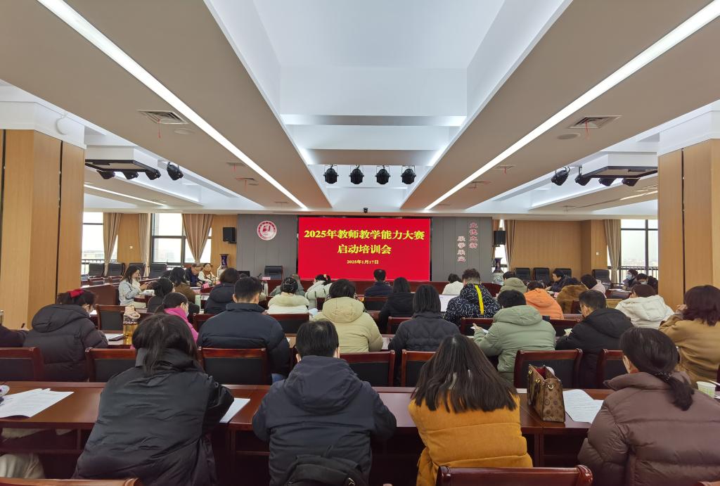 (本网讯何巧巧)1月17日,学校2025年教师教学能力大赛启动培训会在图新楼601会议室召开。各教学单位分管教学能力大赛副院长(副主任)、95名参赛队教师参加了此次会议。党委委员、副校长胡昌杰出席会议并就备赛工作提出要求,会议由教师发展中心副主任张舟主持。