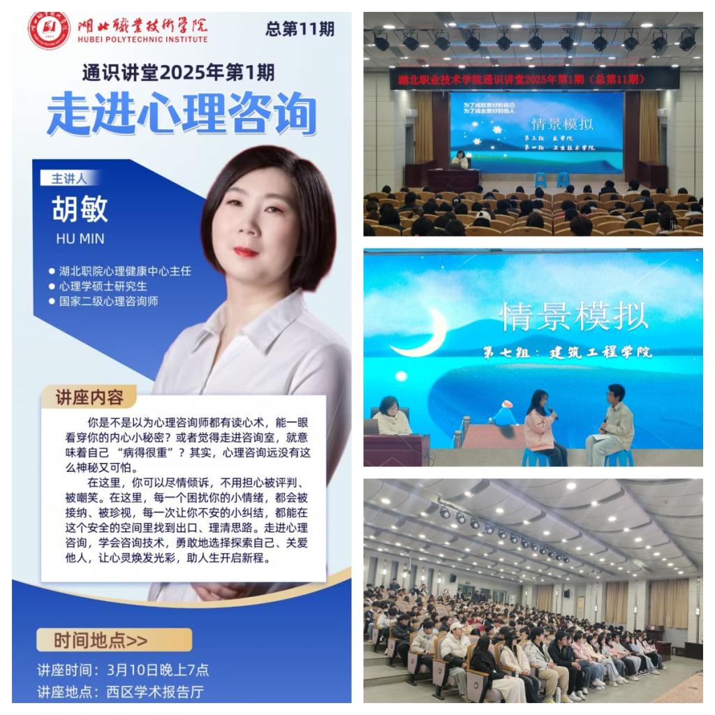 (本网讯 陈芷妍 祝非凡)3月10日,学校总第11期通识讲堂暨2025年第1期心理委员主题培训在西区文博馆学术报告厅顺利举行。学工部心理健康教育中心主任胡敏以“走进心理咨询”为题带领学生们勇敢地探索自己、学会关爱他人。300余名师生参加了本次讲堂。