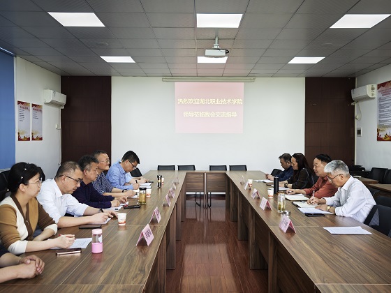 在孝感市建筑业协会,会长刘金华高度评价学院人才培养质量,建议通过“协会统筹资源、校企共建平台”模式,利用学校建筑机器人、BIM技术等新质生产力资源为孝感建筑企业发展多作贡献;借助孝感市建筑行业产教融合共同体平台,深化校企合作,与企业建立动态岗位需求库,与学院“订单式”人才培养形成闭环对接,促进孝感市建筑业健康发展。