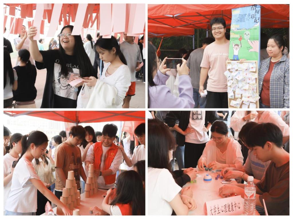 个人挑战类项目同样亮点纷呈,“听歌识曲”现场流淌着青春旋律,“纸杯叠叠乐”考验动手能力与专注力,“指尖印记”用彩色指纹绘成美好祝福,“空瓶奇遇记”结合套圈游戏与心理任务,“情绪魔方”玩转多彩表情,“字趣横生”锻炼推理思维能力。同学们手持定制闯关卡穿梭于各个展区,每次挑战成功便盖下一枚印章,这不仅是通关证明,更是成长路上的珍贵纪念。
