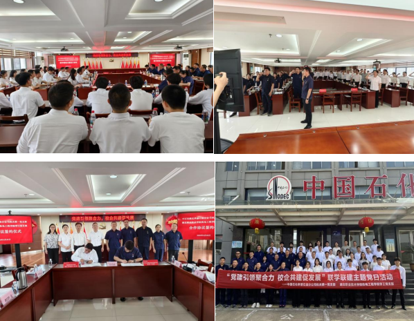 (本网讯孙自力)4月23日,机电工程学院学工党支部与中石化湖北孝感石油分公司机关第一党支部联合开展了“党建引领聚合力校企共建促发展”联学联建主题党日活动。中石化孝感石油分公司党委书记陈龙,学校党委委员、副校长梅重出席活动,中石化湖北孝感石油分公司机关第一党支部、学校机电工程学院学工党支部全体党员参加活动。双方通过重温入党誓词、理论学习、交流研讨、签订协议和实地参观等形式,开启校企深度合作新篇章,为培养高技能人才注入新动能。
