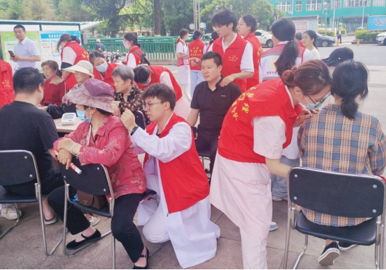 在槐荫桥社区和乾坤阳光物业公司的大力支持配合下,护理学院师生以服务为理念,以学习为根本,以实践为导向热情洋溢地开展各项服务项目。何云海老师寻医问诊,耐心细致;陈娟老师健康宣讲,声情并茂;25名入党积极分子志愿者快乐地开展健康志愿服务活动。一幅幅生动的画面在小区展演,一声声动情的关爱在小区飘荡,本次活动效果喜人。老年人“春季养生”健康宣传145人次,小区居家养老居民寻医问诊16人次,免费测血压96人次、测血糖100人次,颈肩头部按摩52人次。4名智慧健康养老服务与管理专业的志愿者来到独居老人张爷爷家里,开展了心理陪伴、量血压、测血糖家庭卫生清洁等活动。