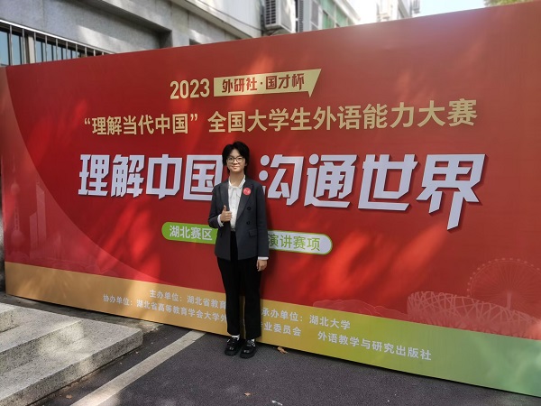 在英语学习领域,她是展现出独特的毅力与天赋。她以534分的优异成绩通过英语四级考试,随后在众多英语竞赛中脱颖而出。在“外研社·国才杯”“理解当代中国”全国大学生外语能力大赛九州线上平台选拔赛中,她一路过关斩将,在演讲、写作、短视频赛项均荣获一等奖;在省赛短视频赛项中斩获银奖;在全国职业院校英语口语赛项湖北省选拔赛中取得第三名;在全国大学生英语竞赛初赛与决赛中均荣获一等奖。这些亮眼的成绩,是郭若涵日复一日坚持学习、勇于挑战自我的有力见证。但她更珍视背后的成长:“这些标签不是终点,而是提醒我继续奔跑的里程碑。”