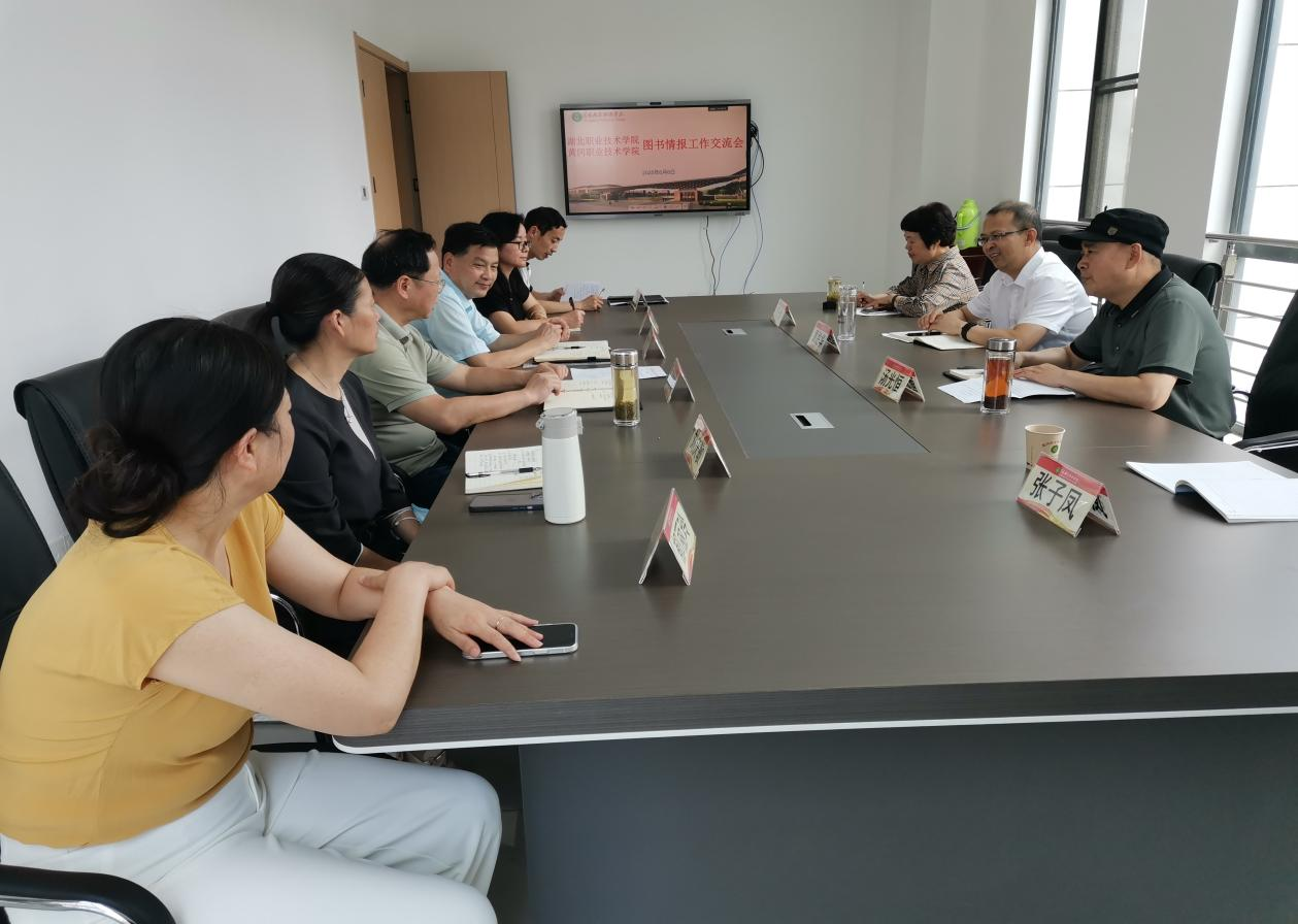 (本网讯张子凤)6月6日,我校袁胜华副校长带领图书档案馆4人团队,前往黄冈职业技术学院图书馆开展专题调研。黄冈职业技术学院副校长周常青、图书馆馆长杨勇等接待袁胜华一行。
