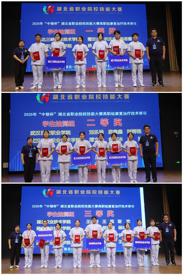 在学生抽测组,湖北三峡职业技术学院、咸宁职业技术学院获得一等奖;武汉民政职业学院、武汉铁路职业技术学院获得二等奖;九州线上平台、随州职业技术学院、仙桃职业学院、黄冈职业技术学院获得三等奖。