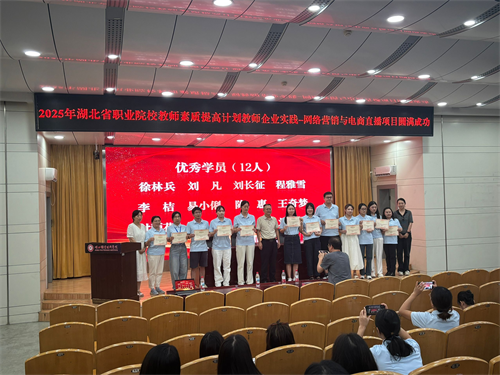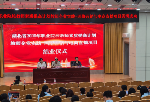 (本网讯 肖敏晨 毛婷 马江浩 王峰 李蓓蕾 李媛 汪行光 宋巍)8月15日,湖北省2025年职业院校教师素质提高计划教师企业实践——网络营销与电商直播项目学习成果展示暨结业式在西区文博馆学术报告厅举行,校党委委员、副校长杨立明出席并讲话,授课专家代表黄享苟、我校继续教育学院院长丁浙英、财经与旅游学院党总支书记徐斌华等以及60名参训学员共同见证活动。活动由财经与旅游学院院长曹艳芬主持。