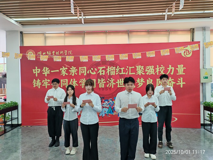 (本网讯 陈灏 唐振兵 宁曦  喻琳 )10月1日上午,“铸牢共同体金秋石榴中国红 · 奋进新征程感恩同行复兴梦”主题活动在各校区举行,师生代表、在校务工员工及子女等共聚一堂,载歌载舞共庆伟大祖国华诞,共话奋斗凝聚强校复兴力量。