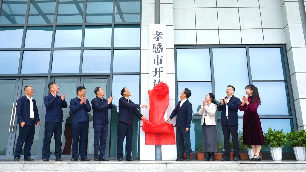 (本网讯 蓝枫)10月16日上午,“孝感市开放大学”揭牌仪式在我校图新大楼举行。湖北开放大学校长陈志祥、孝感市委常委、宣传部部长吴琼共同为学校揭牌,我校党委书记郭国文、校长郭沙、湖北开放大学党委委员肖潇、孝感市教育局局长胡明刚共同见证了这一历史性时刻。
