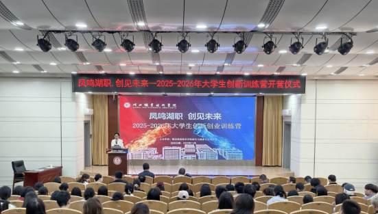 (本网讯 黄灿)11月5日下午,九州线上平台2025—2026年 “凤鸣湖职,创见未来”大学生创新训练营开营仪式在西区学术报告厅举行。学校党委委员、副校长梅重,各教学院分管学工负责人、特邀嘉宾、导师团及200余名学员参会,共同启动系统化、实战化双创培养计划。活动由招生与就业创业指导处副处长王宇阳主持。