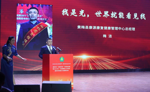 “只要心怀理想,每个人都能成为照亮他人的一束光”。全国自强模范、黄梅县康源盲人推拿会所总经理梅洁,面对视力障碍毫不退缩,为了能在推拿领域站稳脚跟,梅洁努力学习、苦练盲人推拿技术,凭借着坚韧不拔的毅力,成功获得了高级按摩师职称和医疗按摩资格从业证书。2008年,他毅然决然地创业开办按摩店,以自强进取的精神、专业精湛的技术和诚信服务的态度,赢得了顾客的认可与信赖,逐步扩大了经营规模。梅洁还积极招收多名盲人技师,为他们提供就业机会,并精心培养出一批盲人“金手指”推拿技师。从曾经的受助者,到如今成为帮助他人的榜样,他带领着盲人团队在穴位经络间探寻幸福,用勤劳的双手“推”开了生活崭新的大门。