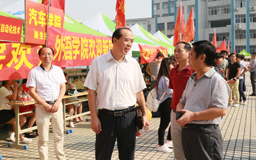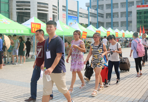 “同学,你是哪个教学院的?需要帮忙吗?”学生迎新志愿者顶着炎炎烈日,忙碌的穿梭在校园的各个角落,他们忙着为新同学缴费、办饭卡,他们忙着帮新同学拖行李箱、拿生活用品,他们忙着为新生指路……太阳晒黑了皮肤,汗水浸湿了衣服,他们没有半句怨言,用高涨的热情抒写着青春的风貌。迎新期间,学工处制定了周密的迎新方案,党政办公室、纪委做好了综合协调和纪律保障工作,党委宣传部为迎新营造了热烈的氛围,教务、招生部门认真做好学籍、专业的登记与管理工作,后勤处、后勤服务中心尽心竭力做好后勤保障工作,财务、保卫等部门积极做好经费收缴和安全保卫工作,……各职能部门及院部负责人坐镇迎新一线,及时为新生及家长解答各种疑问,全体迎新工作者个个精神饱满,热情、细致、周到地服务,确保了迎新工作高效、有序。