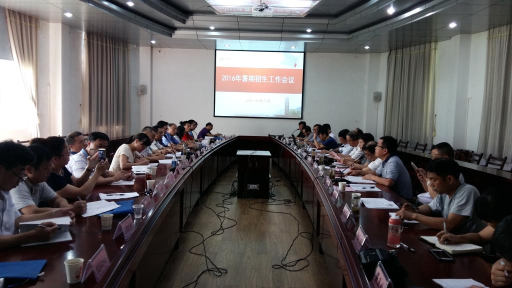 8月1日,学校召开2016年暑期招生工作会议,全体校领导、各招生点负责人和相关职能部门同志参加了会议。会议由校长朱虹主持。