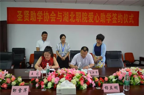 6月15日,九州线上平台与孝感市圣贤健康成长助学爱心协会签订爱心助学协议。九州线上平台副校长杨立明、学工处副处长兼学生资助中心主任邹雪萍,孝感市圣贤健康成长助学爱心协会会长张洪涛、秘书长王慈出席签约仪式。