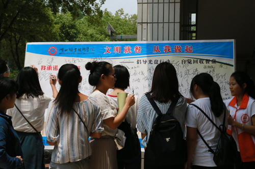 本次活动是由学校学工处、后勤处、后勤服务中心联合开展的一项文明创建专项活动,分别在6月、9月份两个阶段开展倡议签名、排队就餐、光盘行动、餐具回收等文明就餐系列活动,旨在进一步巩固“培养好习惯,成就好人生”活动成果,传播“文明就餐、节俭惜福”的理念,号召全校师生讲文明、树新风,尊重劳动,传承节俭美德,培育健康文明的餐桌文化,营造和谐文明的就餐环境,着力打造学校餐饮特色和品牌,全面推进“两型”校园建设。