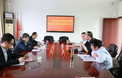 4月27日下午,信阳师范学院副院长李俊一行来校考察交流。学校党委书记蔡诗红、副校长李佳圣及科研处负责人等热情接待了来宾,并进行了交流座谈。
