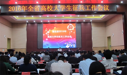 4月14日,湖北省2016年大学生征兵工作会议在湖北工业大学召开。省教育厅副厅长张金元、省征兵办副主任周树铎、全省高校分管征兵工作的校领导和职能部门负责人参加了会议。会议宣读了表彰文件,对2015年征兵工作进行了总结,对2016年全省大学生征兵工作进行了动员部署,下达了各高校征兵工作任务书。学校被湖北省教育厅、湖北省征兵办公室授予“湖北省大学生征兵工作先进单位”荣誉称号,副校长杨立明在会上作了题为“建立长效工作机制,努力完成征兵任务”的经验交流发言。