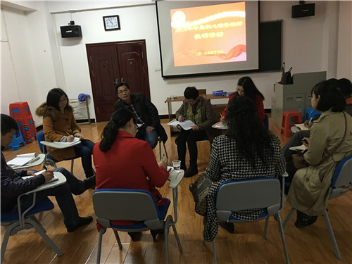 活动中,中心专职教师袁丽容阐述并展示了《心理健康教育课程》建设的进展和成果,就心理健康教育课程标准、特色化发展等方面的内容进行了详细阐述。中心其他兼职咨询师也就心理健康课程的教学方式、教学重点、各学院实际情况、特色化发展等方面发表了各自的见解,同时为我校心理健康教育工作的有效开展提出了宝贵的建议。
