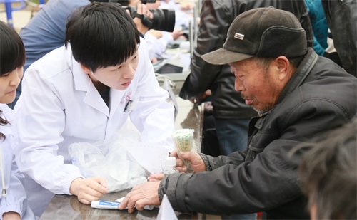 在新桥村新修的文化活动广场,人头攒动,热闹非凡。前来寻求帮助的村民络绎不绝,临时就诊台周围,很快围满了候诊和咨询的群众,大部分村民是留守老人,他们严重缺乏基本健康知识,再加上长期的劳累,导致高血压、糖尿病、劳损患者较多。专家们不仅为他们免费看病、检验、发放药品,还根据患者的病情提出治疗方案或建议,对日常饮食和休息等给予科学的指导。医务队员们热情周到的服务态度和精湛的技术受到村民的一致好评。