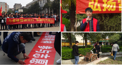 “希望同学们向雷锋同志学习,做有正确人生观、价值观、世界观的新青年,发扬雷锋同志的“钉子精神”,集体主义精神,积极投身到校园建设和服务中,通过亲身实践,不断加深对雷锋精神的认识。”汽车学院王世艳同学向全体同学发出号召。3月2日下午,汽车学院在北区操场举行了学雷锋活动启动仪式。15级青年志愿者代表吴龙龙说,无论是现在还是将来走上工作岗位,雷锋是永远的榜样,他的精神一直激励着自己前行。启动仪式结束后,同学们开展了卫生清扫活动。