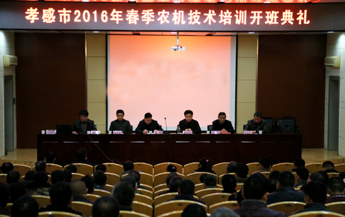 阳春三月,春暖花开,正值农事春耕忙。3月9日上午,孝感市2016年春季农机技术培训开班典礼在我校学术报告厅隆重举行。孝感市农机局局长戴杰群、副局长高乔明,孝南区副区长蔡辉、孝南区农机局局长李浩然,学校党委委员、副校长刘发兴,继续教育学院负责人胡加鹏等出席了开班典礼。来自孝感市各乡镇农机合作社理事长、农机购户骨干、农机操作手等160多人参加了开班仪式,开班仪式由胡加鹏主持。