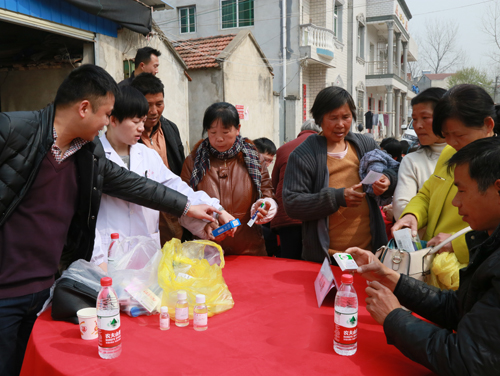 活动现场,人头赞动,热闹非凡。前来看病的村民络绎不绝,临时就诊台也很快围满了候诊的群众。看病的大部分村民是留守老人,他们严重缺乏健康知识,再加上长期的劳累,导致高血压、糖尿病患者较多。专家们不仅为他们免费看病、检验、发放药品,还根据患者的病情提出治疗方案或建议,对日常饮食给予科学的指导。医务队员们热情周到的服务态度和精湛的服务技术受到村民的一致好评。据悉,短短的两小时,免费看病170多人次,免费发放皮肤科外用品350瓶,内科药品70盒。