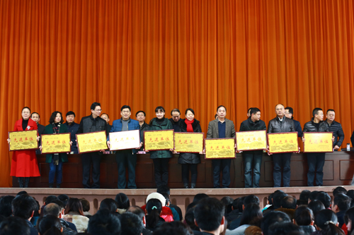 会议通报了学校2015年各类获奖情况。会议表彰了2015年度先进单位、模范干部、优秀教师、优秀专业带头人、优秀教研室主任、模范班主任、先进工作者、五好文明家庭、工会积极分子、模范工会干部、招生先进单位和个人、就业先进单位和个人等。