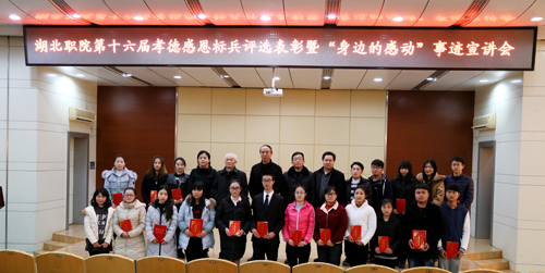 多年来,在学校党委的正确领导下,全体师生紧紧围绕建设高水平创新型全国高职名校的奋斗目标,不断发扬“团结拼搏、艰苦创业、改革创新、争创一流”的湖北职院精神,以弘扬中华传统孝德文化和社会主义核心价值观为主线,在思想道德建设、文化建设等方面,取得显著成效,涌现了全国道德模范、全国第十二届人大代表谭之平,党的十八大代表、全国五一劳动奖章获得者、湖北首届职教之星获得者闫文静,全国道德模范提名奖获得者魏迪仁,全国孝亲敬老楷模余汉江,全国孝亲敬老之星杜芳芳,中国好人左德汉,感动孝感十大人物余志凌,孝感市十佳军嫂何顺莉,勇于担当社会责任的朱德盛等一大批孝德典型,在社会上产生了深远的影响。