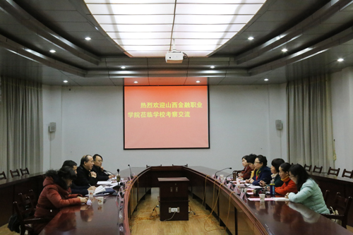 观看学校专题片后,党委书记蔡诗红对山西金融职业学院党委书记王小云一行的到来表示热烈欢迎,并从校企合作、集团化办学、文化建设等方面简要介绍了学校的办学特色及成效。学校党委组织部部长张亚玲主要介绍了我校党建工作及“双带头人”培育工程中的一些具体做法。