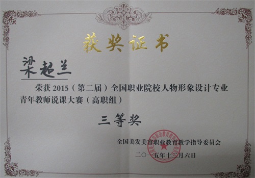 12月5日,全国职业院校人物形象设计专业青年教师说课大赛在上海市第二轻工业学校举行,我校美容学院青年教师杨志萍、梁超兰参加了本次大赛高职组的决赛,分别荣获二等奖、三等奖。