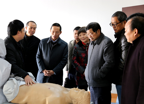 期间,在学校领导的陪同下调研组一行实地参观了南校区建设工地、医护实训大楼等。