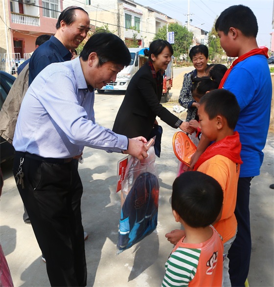 今年10月17日,是我国第三个“扶贫日”。当日,在学校党委书记蔡诗红、副校长李佳圣的带领下,学校党委组织部负责人、机关第四党支部全体支委及党员代表、物流学院教师党员代表等一行11人赴学校精准扶贫驻点村——汉川市回龙镇新桥村,与村党支部一同开展了“我为扶贫办实事”支部主题党日、慰问贫困群众代表等系列活动。主题党日活动由学校第四机关党支部书记丁浙英主持。