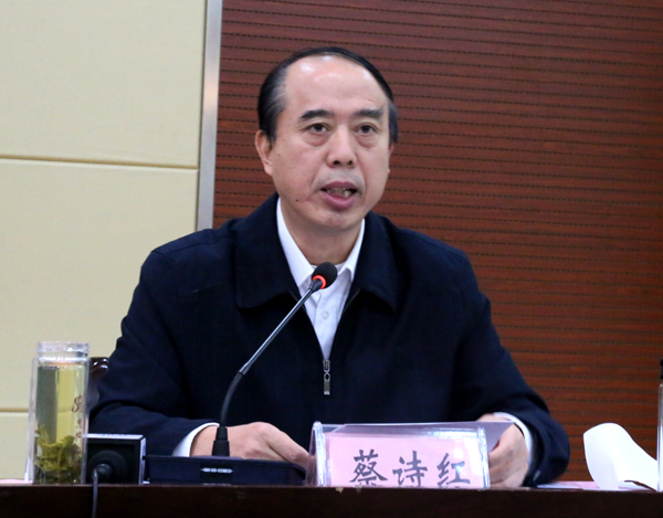 学校党委书记蔡诗红代表学校党委作表态发言