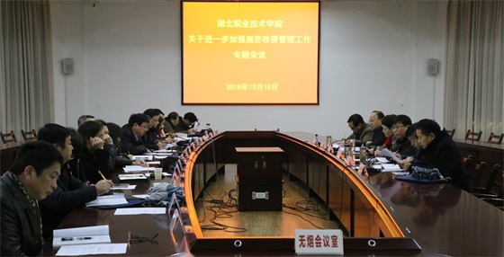 12月19日下午,学校在行政楼301会议室召开规范收费工作专题会议。学校校长朱虹、党委副书记张勇、副校长白梦清、李佳圣出席了会议,学校纪委办公室、计划财务处及各教学单位主要责任人参加了会议,会议由白梦清主持。会上,计划财务处负责人胡德新传达了12月12日省属部分高校收费执行情况提醒告诫会精神,校长朱虹作了重要讲话。