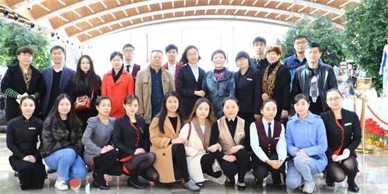 校长朱虹、副校长杨立明率领调查人员抵达第一站:苏州中茵皇冠假日酒店有限公司和苏州托尼洛.兰博基尼酒店,这两家酒店相邻,中间贯通,同属一家企业。苏州中茵皇冠假日酒店外观犹如一艘豪华巨轮,建筑风格现代、大气;苏州托尼洛.兰博基尼酒店九曲回廊,是典型的苏州园林式,建筑风格古朴、典雅。这是两家沉稳、和谐、有底气的大酒店。这两家酒店实习就业的旅游与酒店管理学院毕业学生多达25人,分布在不同的部门:前台、礼宾部、中餐厅、西餐厅、大堂吧、艇吧、宴会厅等。整个酒店里,学校的学生穿着工作服,各就各位:前台的漂亮大方,礼宾部的潇洒神气,餐厅的步履轻盈,学生们笑容温和、话语轻柔、同外宾用英语交流毫不含糊。