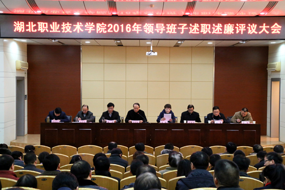 1月12日下午,学校在图书馆学术报告厅召开学校领导班子及领导干部述职评议大会。党委书记蔡诗红代表学校党委对2016年主要工作和党风廉政建设情况进行述职述廉,并作个人述职述廉报告。校长朱虹主持会议,学校全体中层副职及以上干部参加了会议。