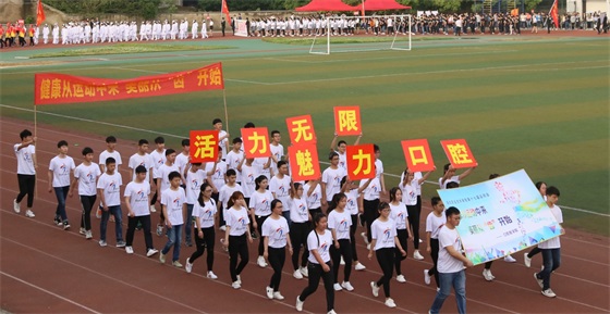 伴随着激进昂扬、催人奋进的运动员进行曲,鲜花队、旗林队、各二级学院运动员代表队、教职工代表队、裁判员代表队迈着整齐的步伐依次入场,他们精神抖擞、口号响亮、激情飞扬,博得了现场师生们的阵阵掌声。