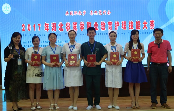 据悉,在此次大赛中,我校高职组代表队获2017年全省护理技能大赛团体一等奖第一名,三位选手舒类杰、段淑婷、邹雨薇获个人全能一等奖,王芬、田樱、卢珊三位老师被评为优秀指导老师,中职组代表队也取得了较好的成绩,获得团体三等奖。