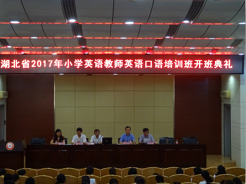 7月3日,湖北省2017年小学教师英语口语培训班在学校文博馆学术报告厅顺利开班,副校长刘发兴、孝感市教育局继教中心负责人罗先伟等出席了开班仪式。学校继教学院、旅游与酒店管理学院、国际教育学院相关同志,来自孝感市各县市区乡镇小学教育一线的98名英语教师参加了开班仪式,并聆听了首场专家讲座。开班仪式由学校继续教育学院负责人林文学主持。