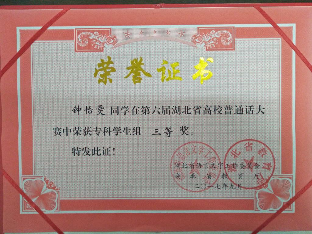 由湖北省语言文字工作委员会、湖北省教育厅主办,三峡大学承办的第六届湖北省高校普通话大赛近期在三峡大学举行,我校教育与艺术学院师生双双获得三等奖。