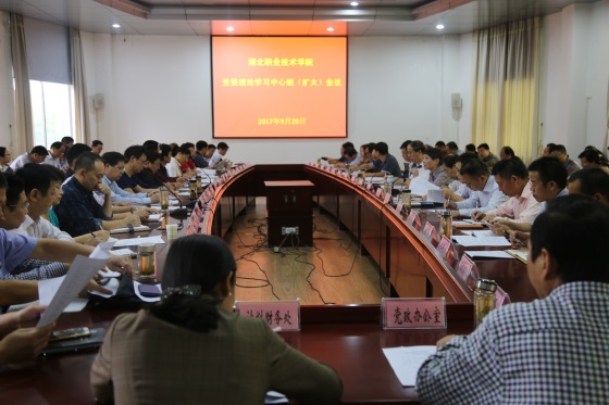 9月29日上午,学校召开党委理论学习中心组(扩大)会议,学校全体校领导、中层干部参加会议。会议由党委副书记、校长朱虹主持。