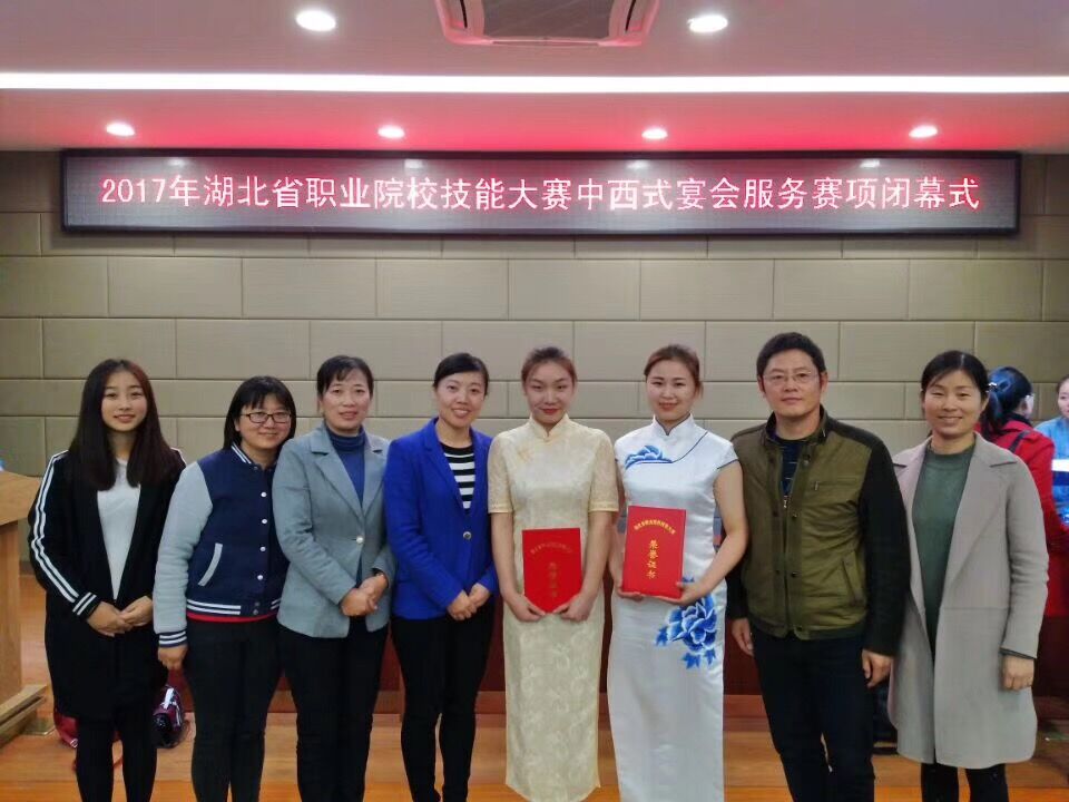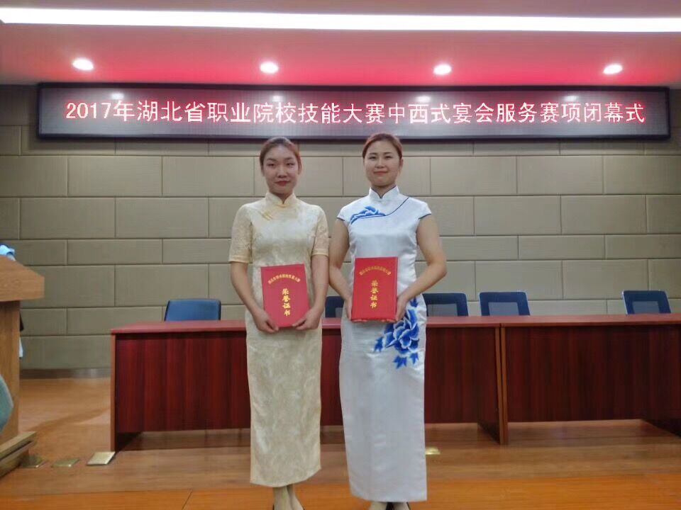 2017年湖北省职业院校技能大赛于11月4-5日在武汉举行,大赛“中西式宴会服务”赛项主要包括中西餐主题宴会设计、摆台、菜单制作、选手互评、英语陈述与英汉互译、两款鸡尾酒调制等项目。来自全省30多所高职院校的68名选手同台竞技,经过紧张地角逐,我校旅游与酒店管理学院选派的杨卓颖、陈燕容两位同学分别以优异的成绩荣获一等奖、二等奖。