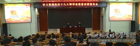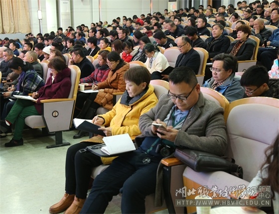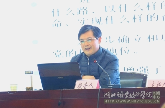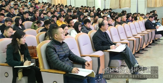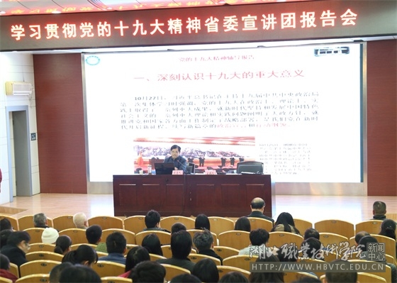 为深入学习贯彻党的十九大精神,根据省委统一安排部署,11月29日下午,学校在西校区文博馆学术报告厅举行了学习贯彻党的十九大精神省委宣讲团报告会。中共湖北省委宣讲团成员、武科大马克思主义学院院长唐忠义教授来校作宣讲报告,学校党委书记蔡诗红、校长朱虹、副校长刘发兴、杨立明等在校领导出席报告会。学校中层干部、离退休老干部、党员教师、优秀学生干部代表等近300人聆听了报告。报告会由学校党委书记蔡诗红主持。