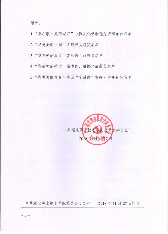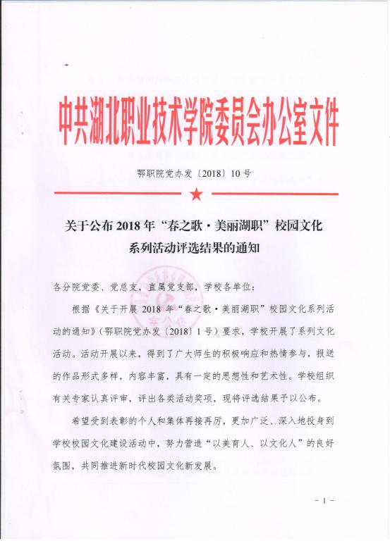 关于公布2018年“春之歌•美丽湖职”校园文化系列活动评选结果的通知