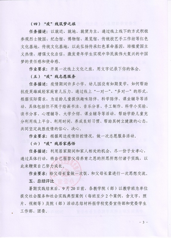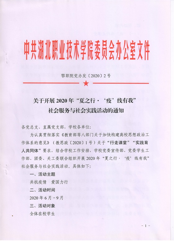 关于开展2020年“夏之行•‘疫’线有我”社会服务与社会实践活动的通知