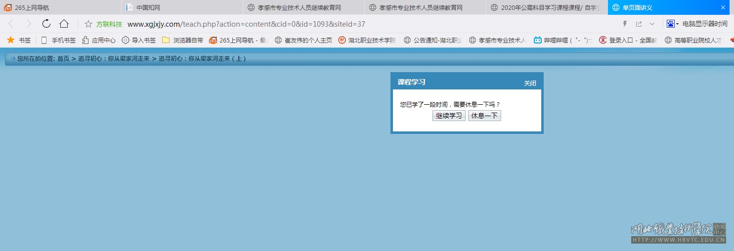 4.课程播放一定时间后,会弹出防挂机提示框,点击“继续学习”即可继续学习,否则系统会停止学时累计。